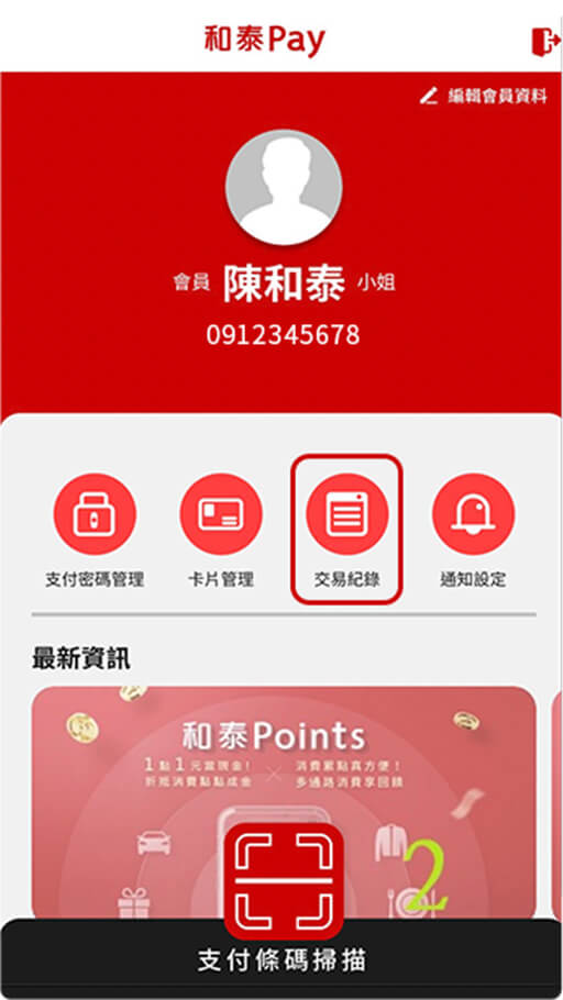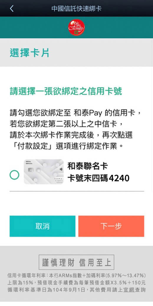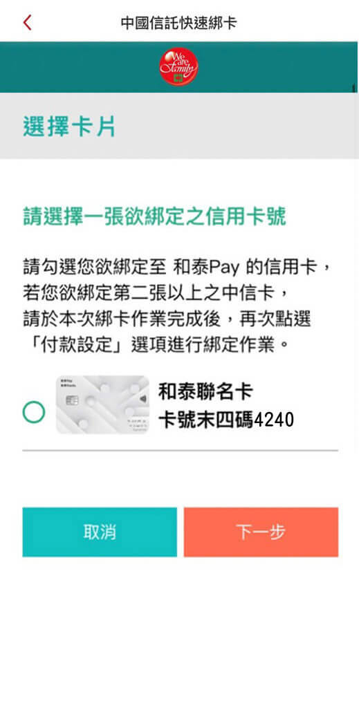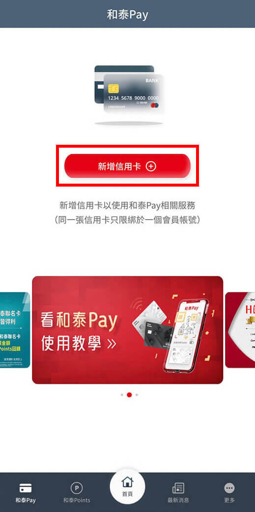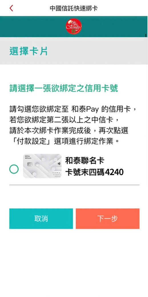 若尚未綁卡,先進行和泰Pay綁定(限用和泰聯名卡)