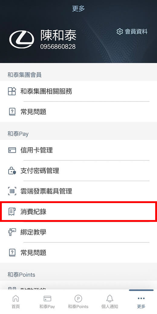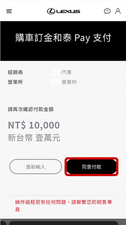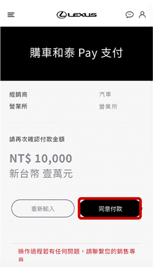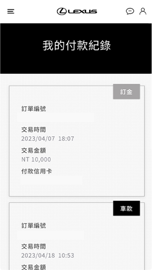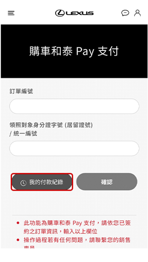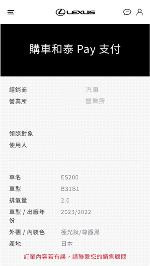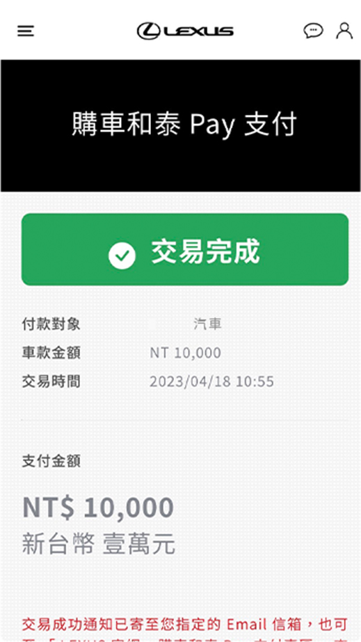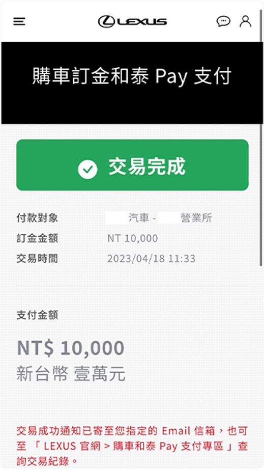 顯示LEXUS購車和泰Pay支付交易紀錄