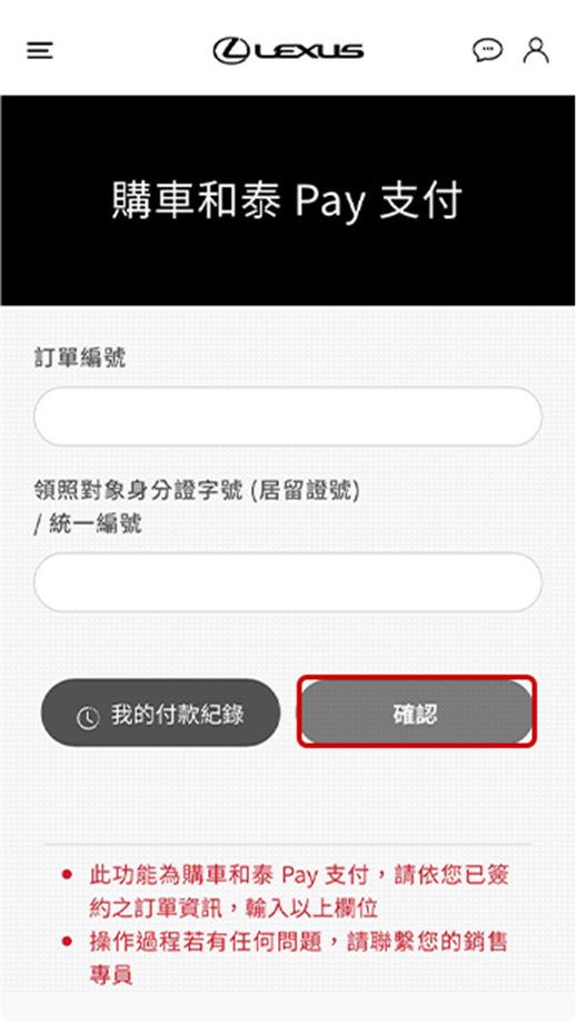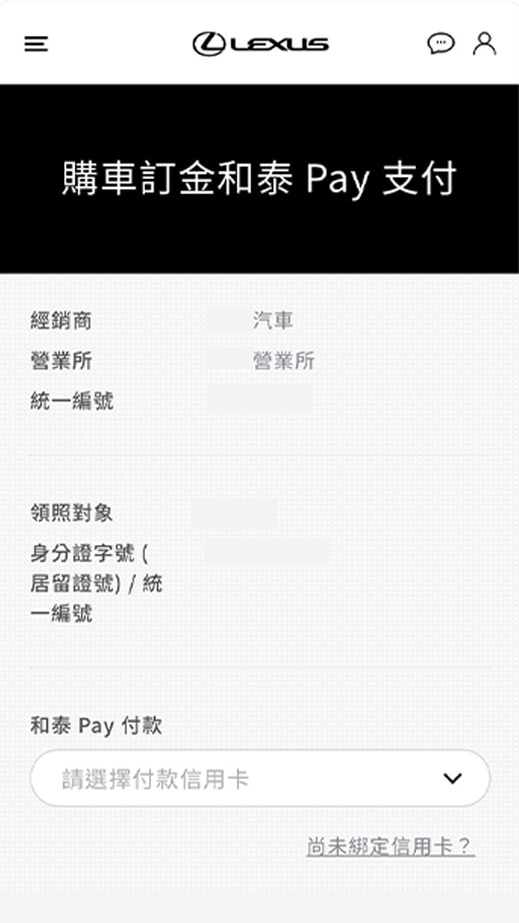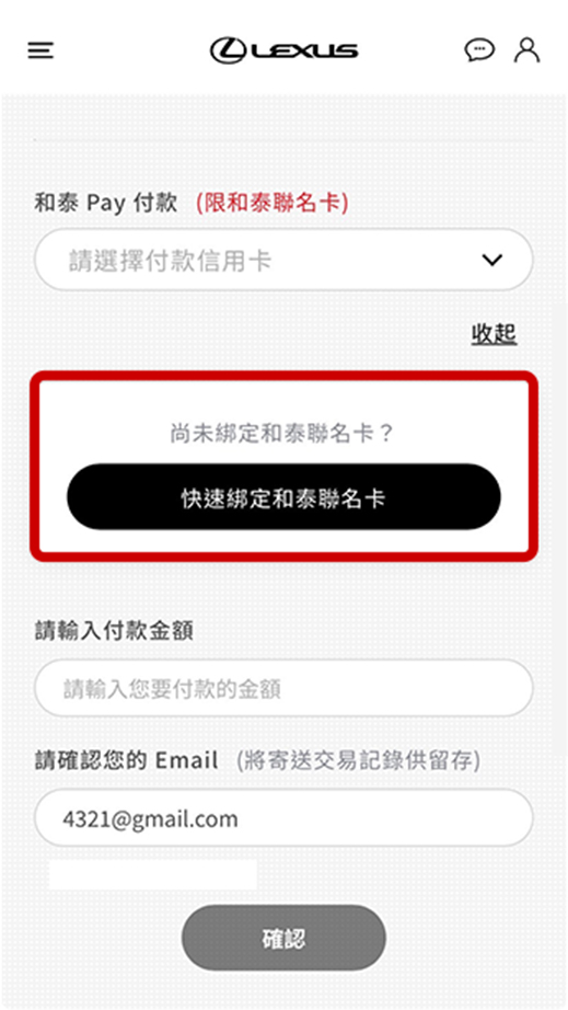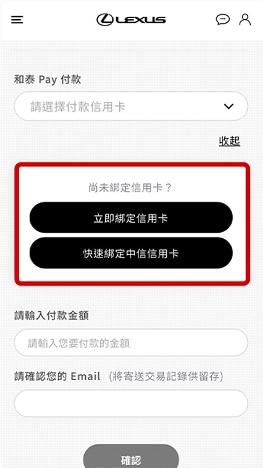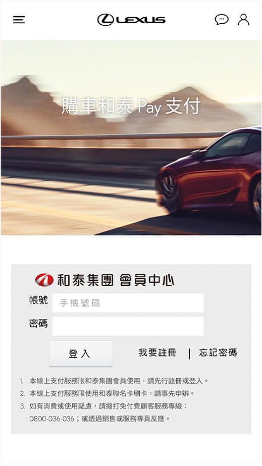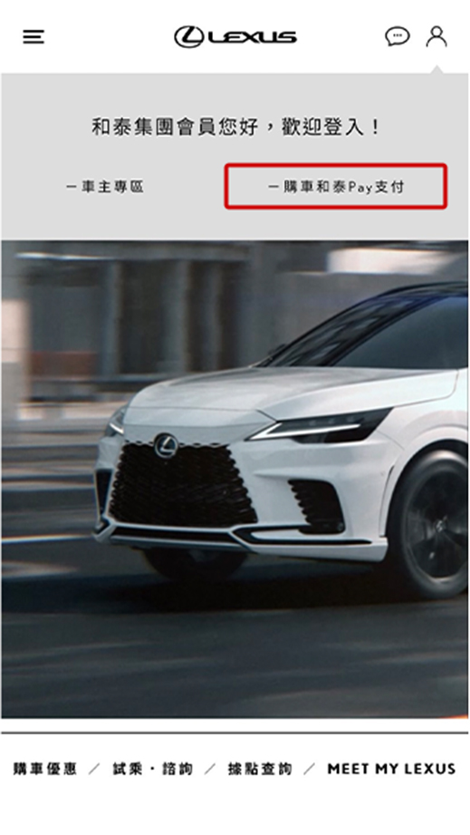 前往LEXUS官網,點選右上選單「購車和泰Pay支付」