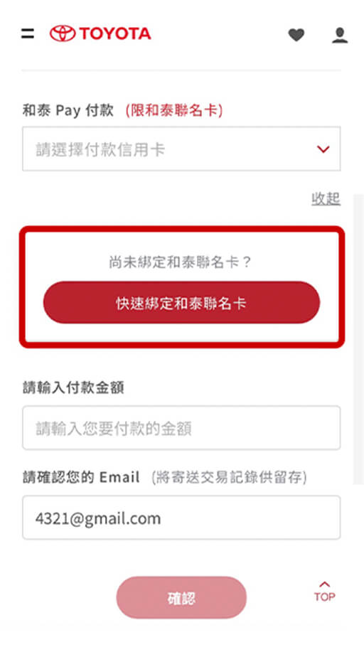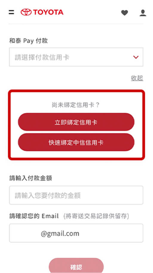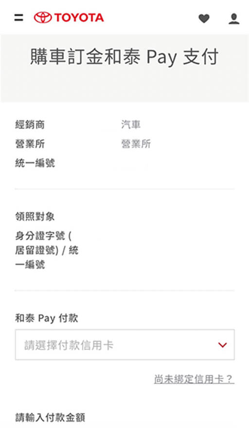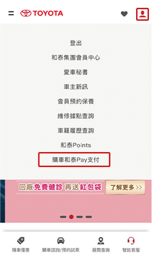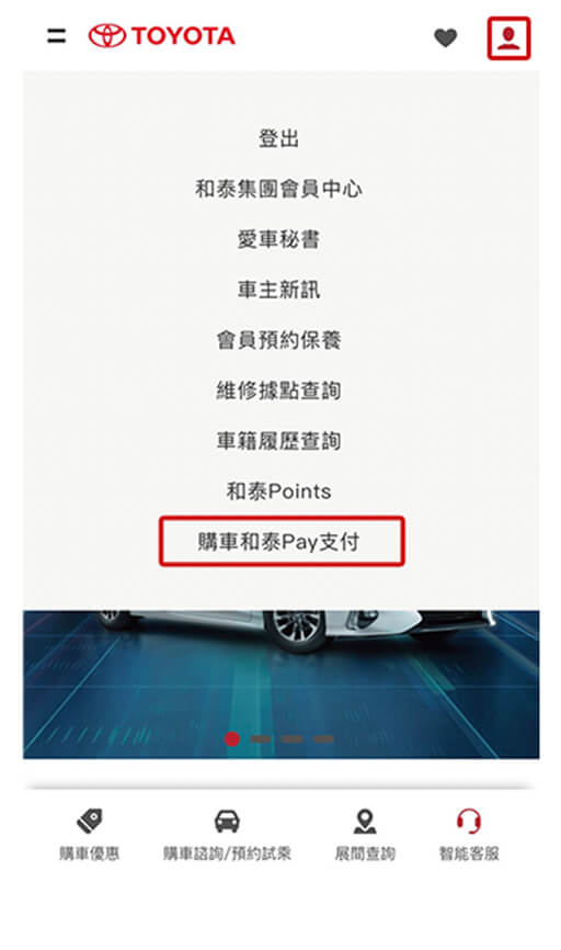 前往TOYOTA官網,點選右上選單「購車和泰Pay支付」