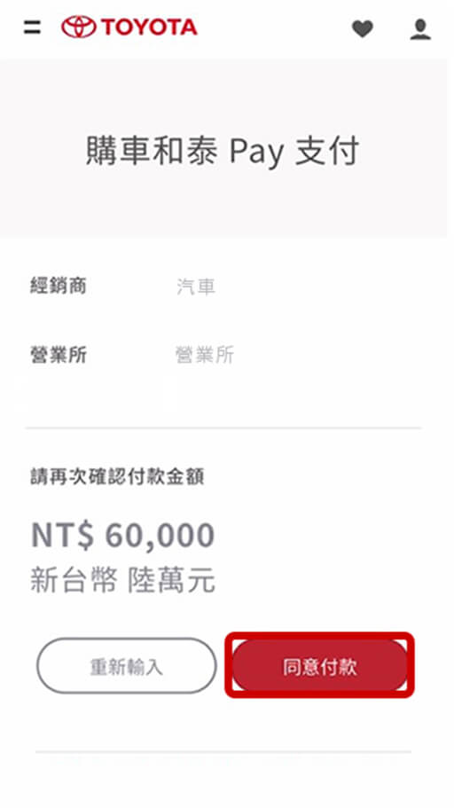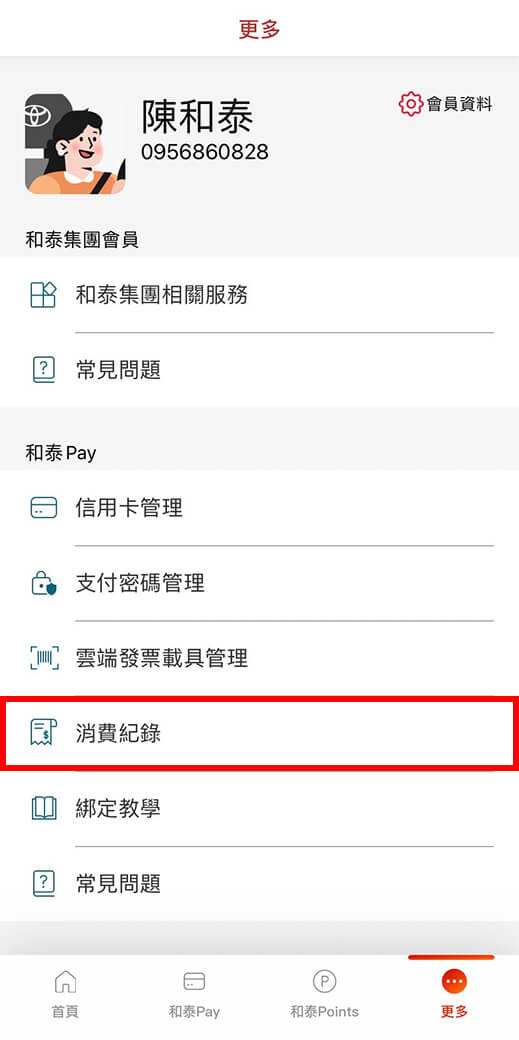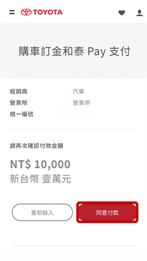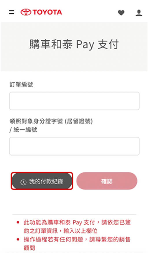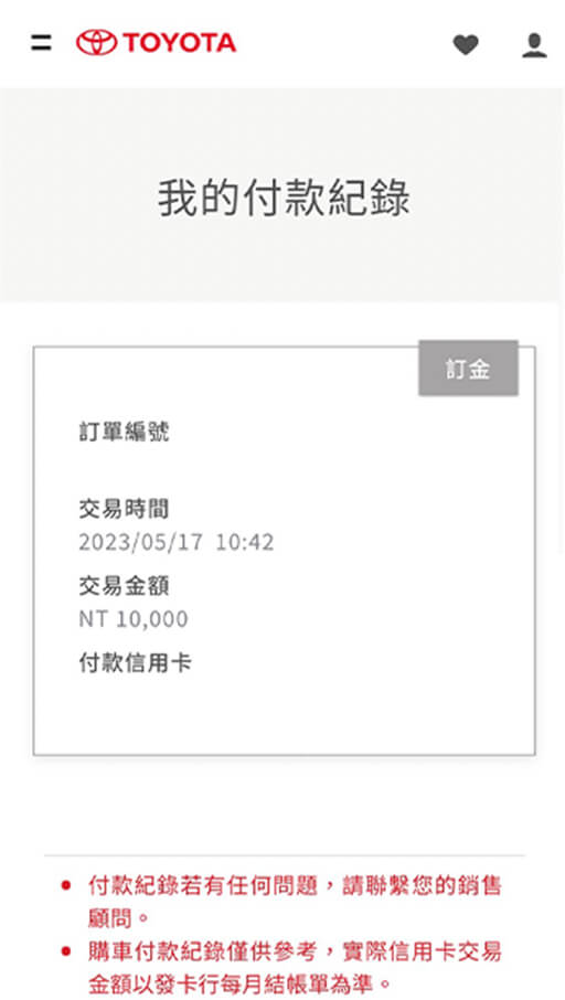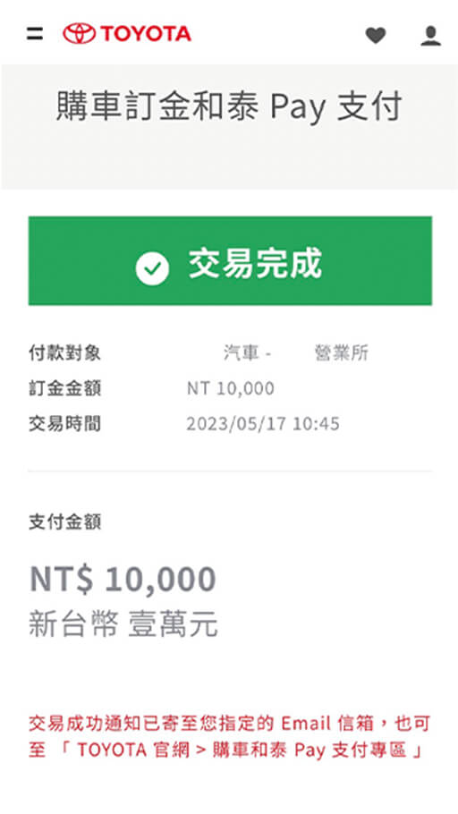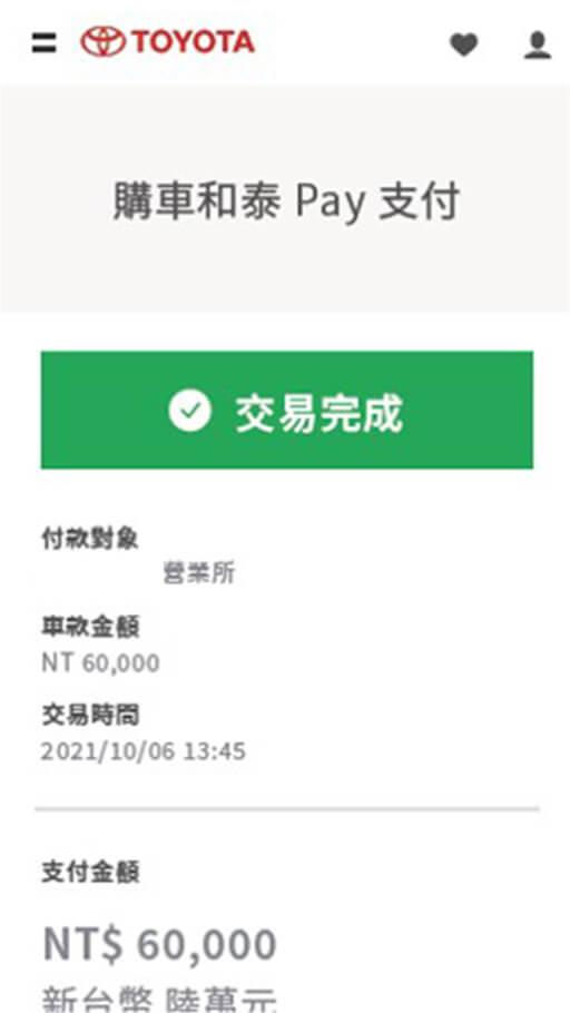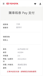 顯示TOYOTA購車和泰Pay支付交易紀錄