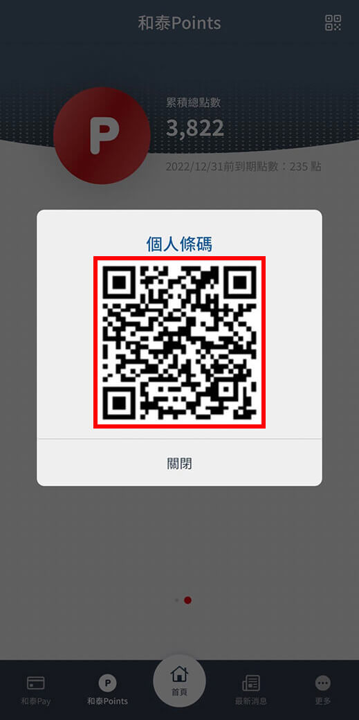 提供結帳條碼予結帳人員掃描並告知欲兌換點數數額