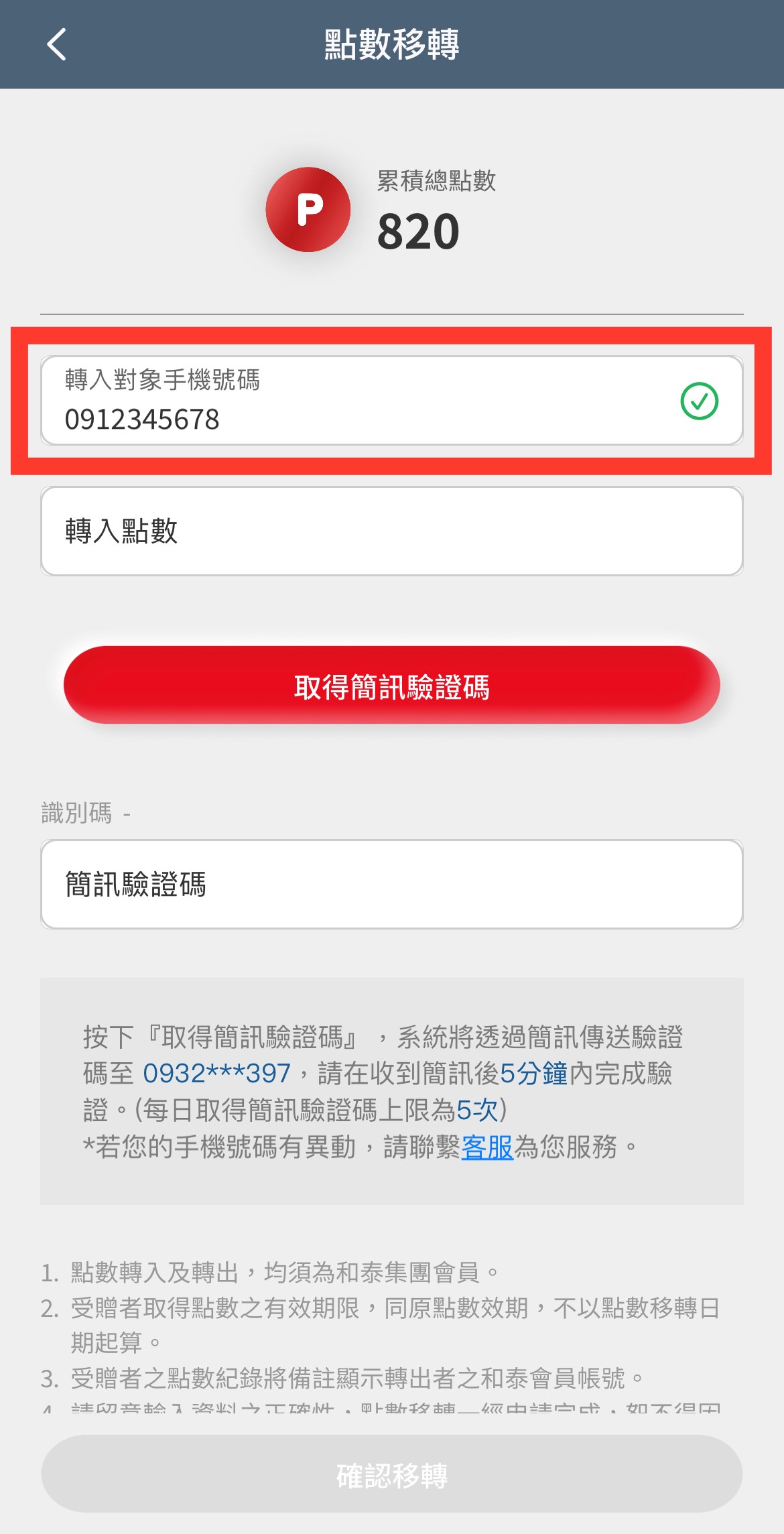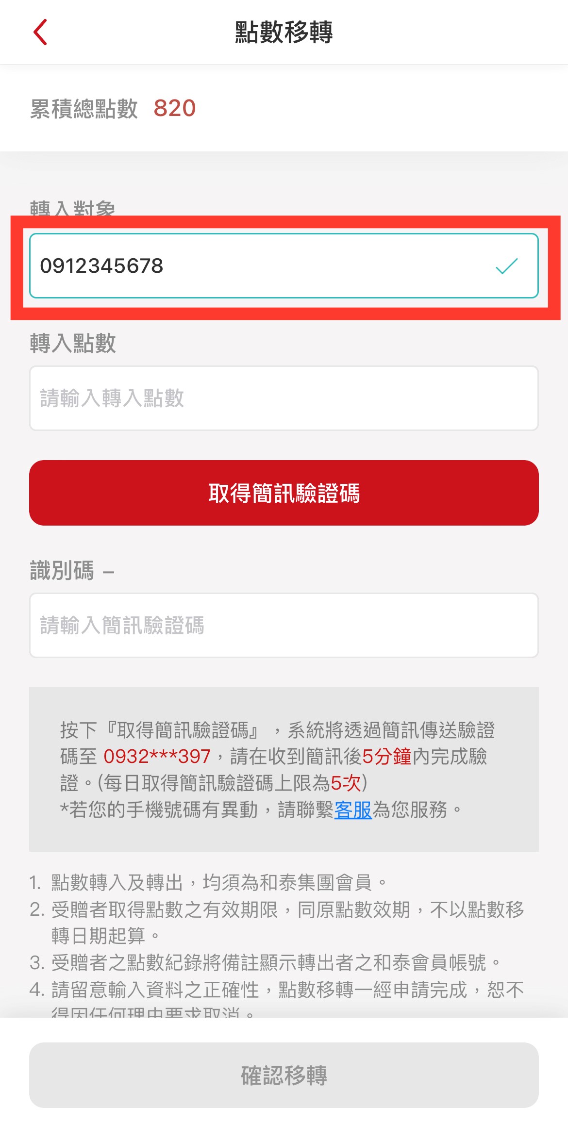 以相機掃描點數序號條碼或輸入點數序號後,點擊確認