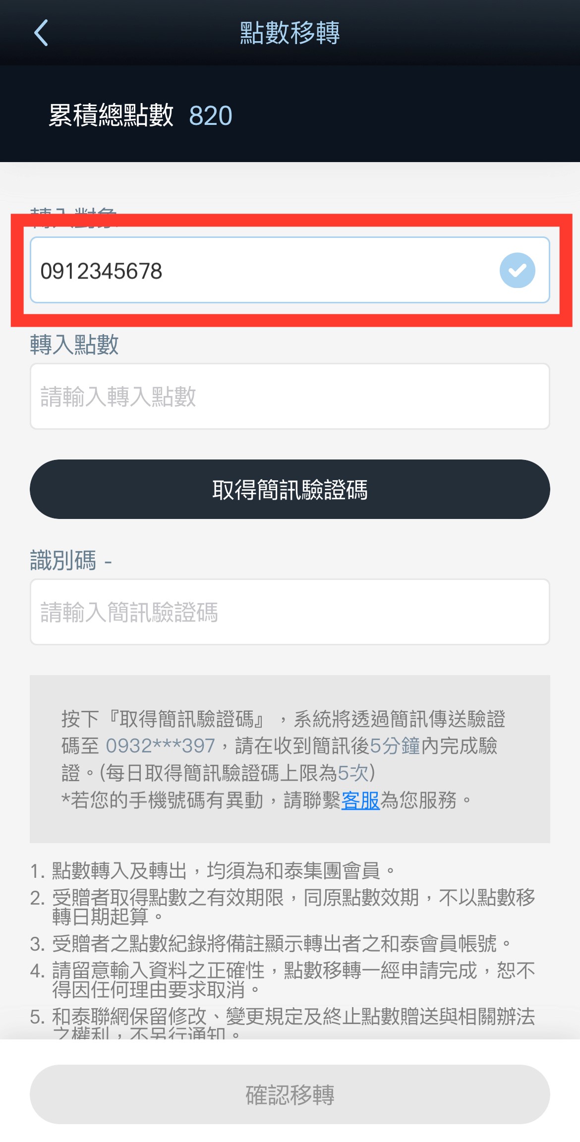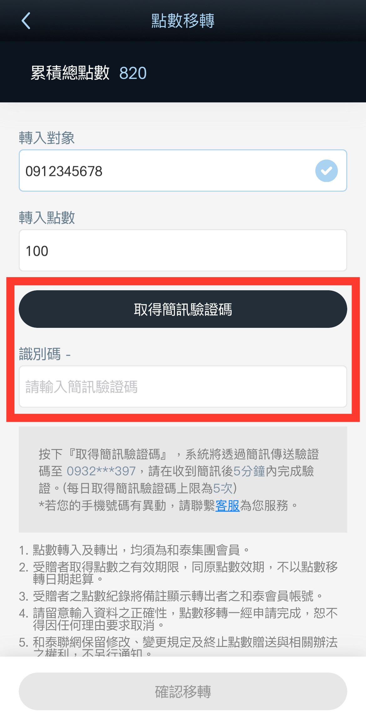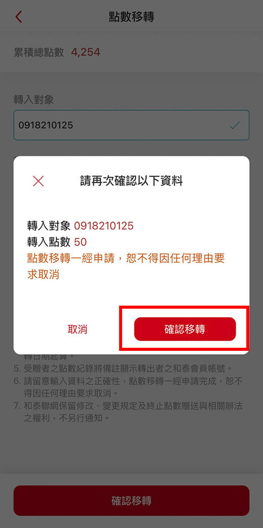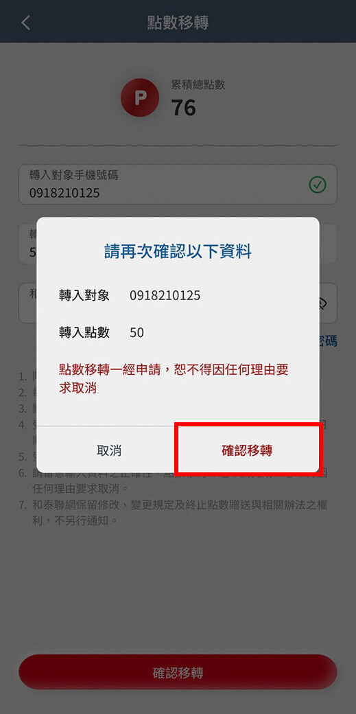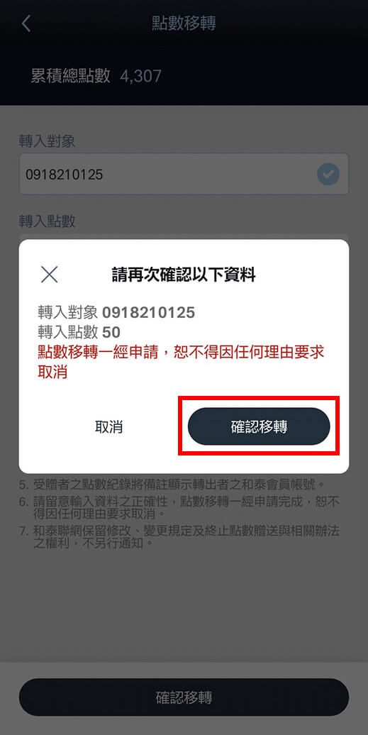 點擊「確認移轉」確認移轉資訊並點擊確認