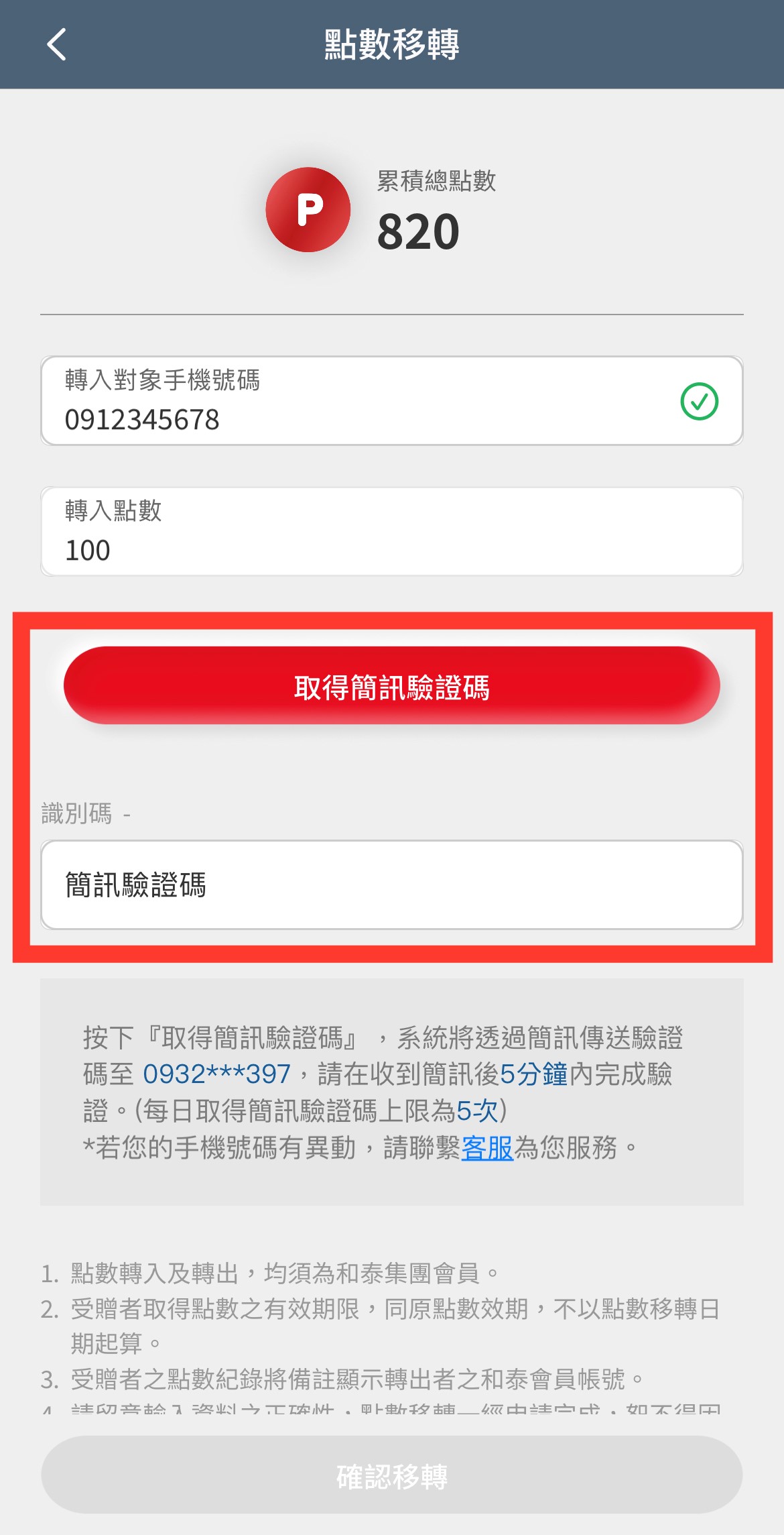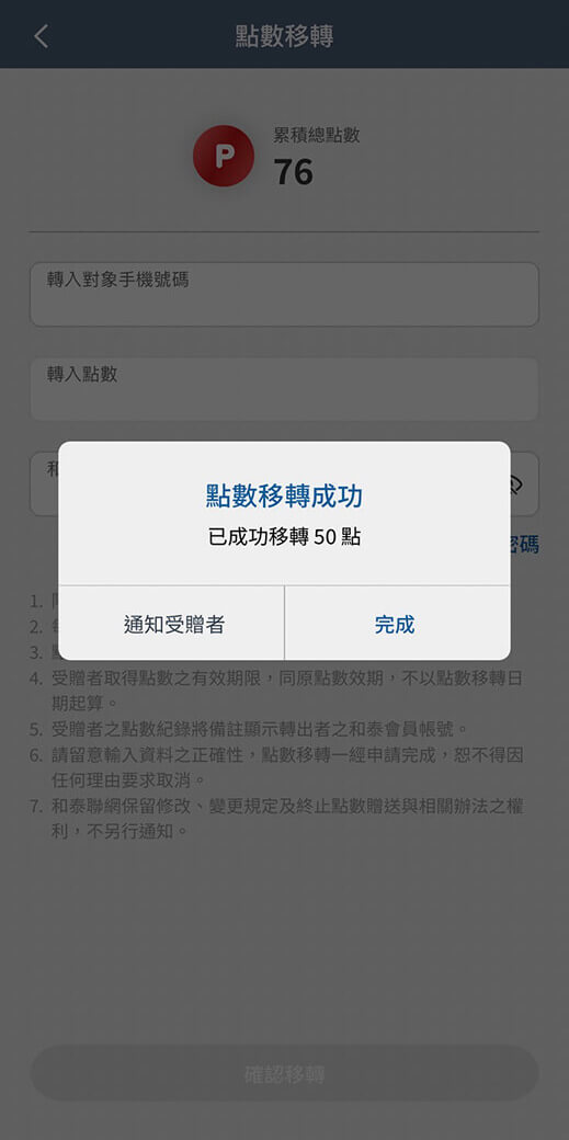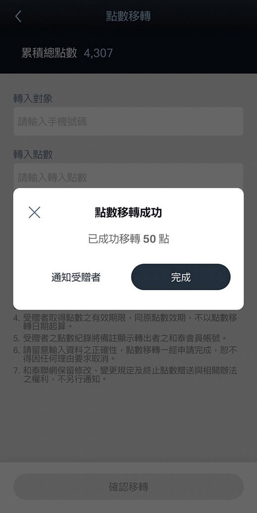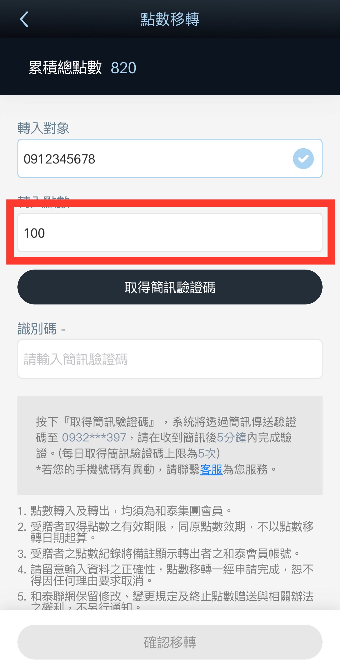 點擊「確認移轉」確認移轉資訊並點擊確認